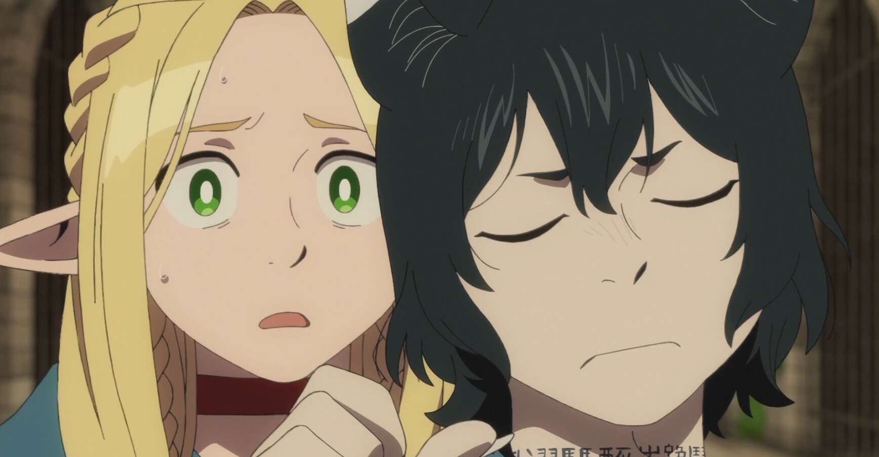 シュローの元従者のアセビはマルシルを人質にとると、ライオス達に武器を捨てて這いつくばるように命令します。そして、マルシルに自分にかかっている術を解くように命令します。マルシルがどんな魔術なのか教えてと言うと、アセビは頭巾を解いて姿を見せます。アセビには猫耳と尻尾があり、アセビは人工的に作られた獣人でした。