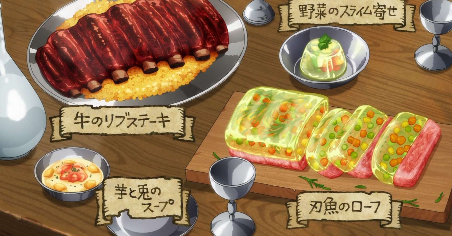 その後、住人に案内された部屋に行くと、部屋の中にはデルガル王の孫、ヤアドがいました。部屋にはライオスたっての希望で、ミノタウロスの肉で作られた牛のリブステーキなどが配膳されます。