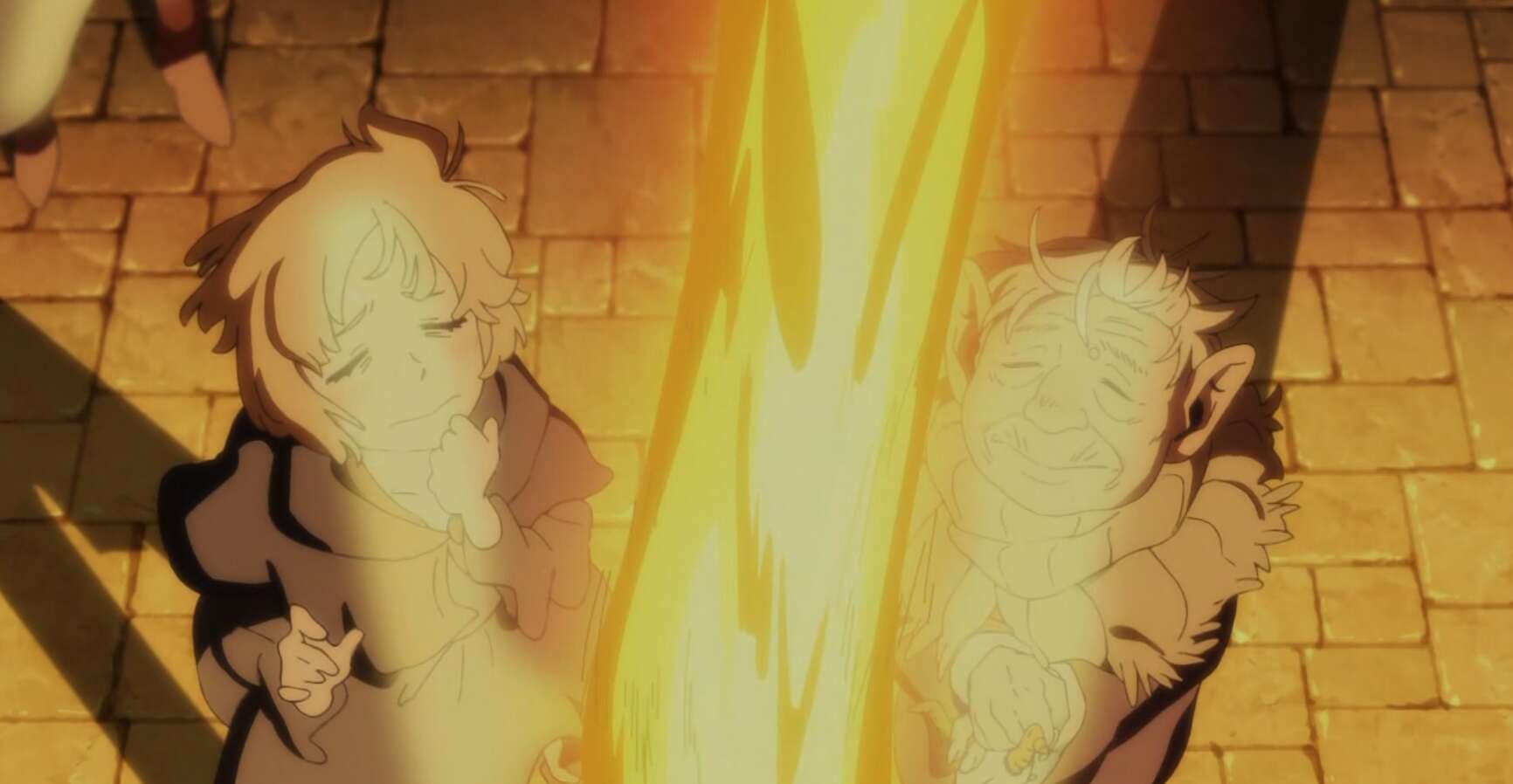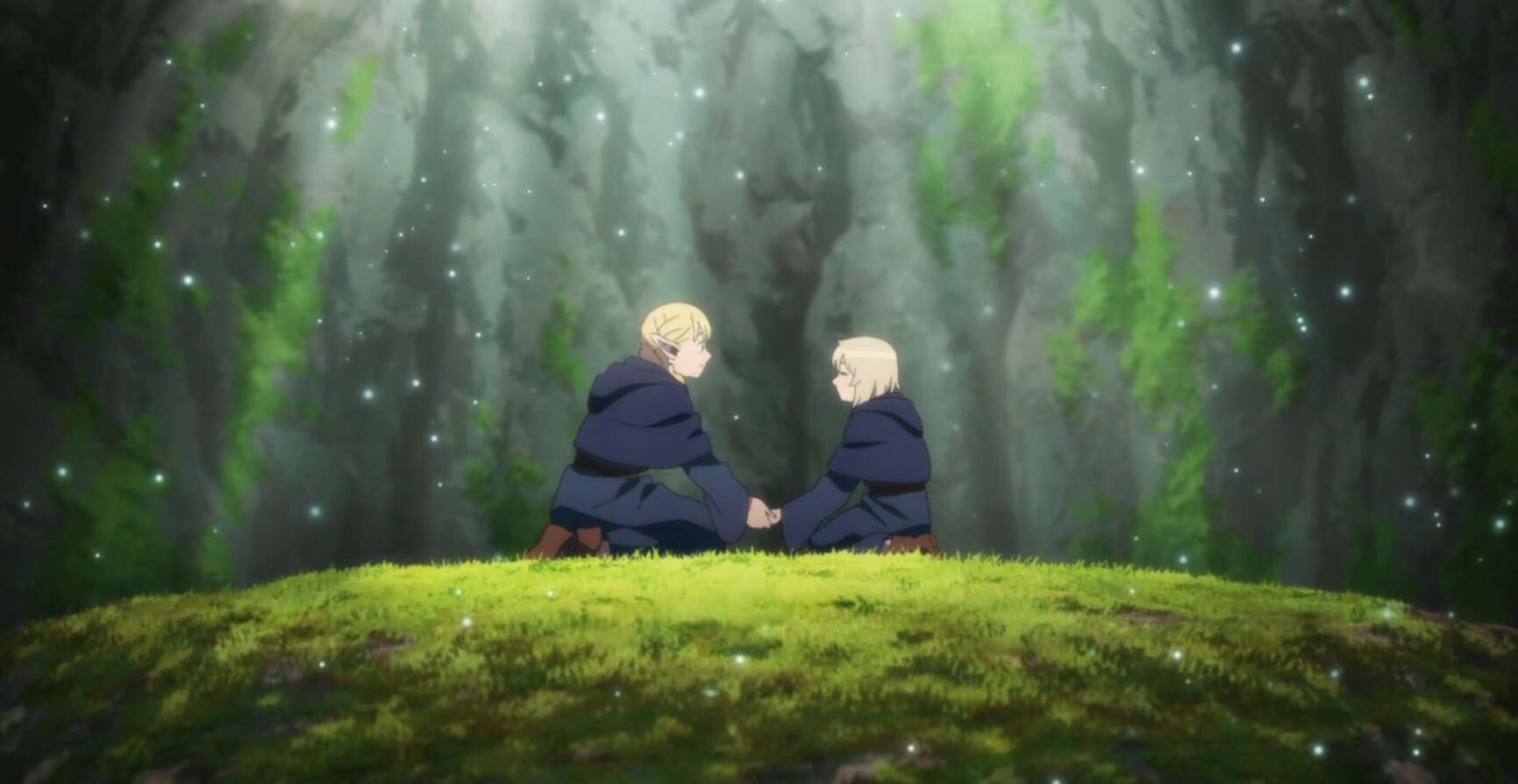 精霊の繁殖実験の結果、マルシルが結界を張ったビンの中の精霊は、死なずにほぼ状態を維持していました。一方、ファリンが結界を張ったビンの中の精霊は、火を近づけると炎となって大きく燃え上がるぐらい増えていました。ファリンがどうやって瓶の中の精霊の状態を作ったのか?興味が出たマルシルはファリンに尋ねます。するとファリンは、いつも行くという本物のダンジョンをマルシルに教えます。