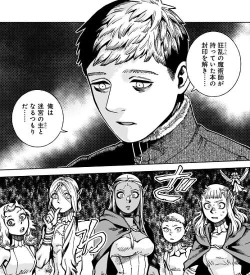 さらにライオスは、狂乱の魔術師が持っていた本の封印を解き、自分が迷宮の主となるつもりだと考えを話してしまい、カナリア隊にもう迷宮に取り込まれていると判断されてしまいます。