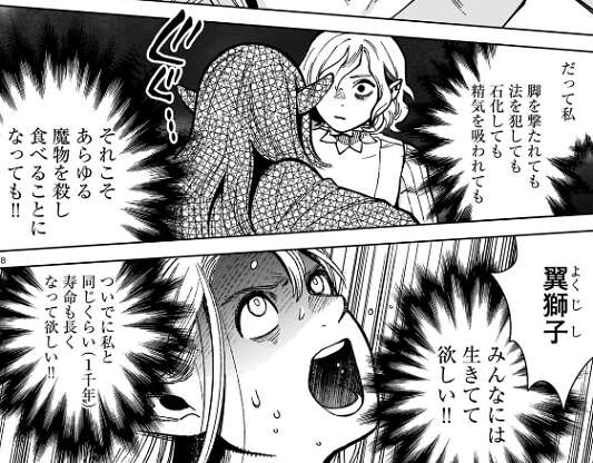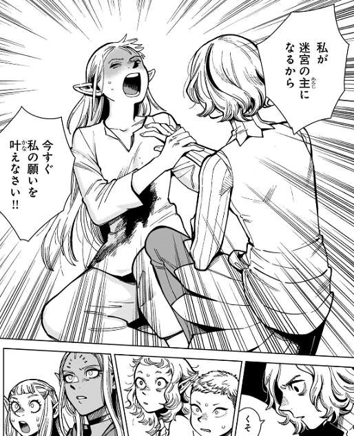 そして、私が迷宮の主になるから、今すぐ私の願いを叶えなさい!!と、マルシルは叫びます。それを聞いて翼獅子は頭がない状態で、素晴らしい!と、つぶやきます。
