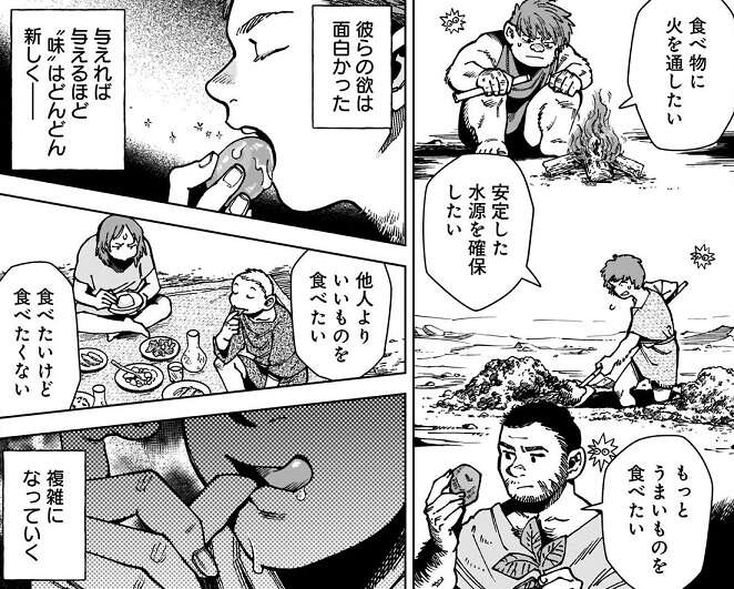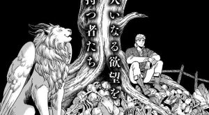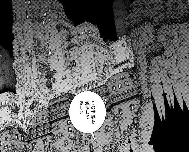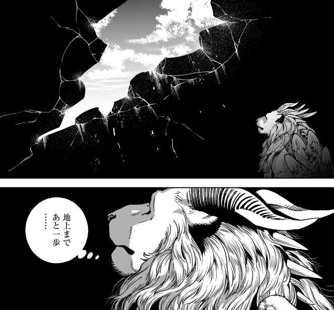 今回は翼獅子が生物の欲を叶え始めた頃から、現在に至るまでが描かれてしました。世界が一旦滅びる前、翼獅子は人間の色々な欲望を叶えて、人間の欲望を味わって楽しんでいたようです。しかし、世界を滅ぼしてほしい、という者が現れて、翼獅子は暫くの間、人間の欲望を味わう事が出来なくなりました。翼獅子にとって、世界の終わりを望む気持ちは理解できないようで、何がいけなかったか分からないようです。そして、今度こそ永遠に続く幸福な食卓を実現しようと、翼獅子は考えているようです。その為に地上に出ようとしていますが、地上まであと一歩まで来ています。翼獅子はライオスの欲を手に入れて、最後の一歩を踏み出そうと考えているようですが、ライオスの欲望とは翼獅子を倒す事です。ライオスはどうやって翼獅子を倒すでしょうか?