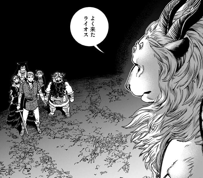 そして、その最後の一歩を踏み出すため、翼獅子はライオスの欲望を欲していました。そして、翼獅子の前にライオス一行がたどり着き、姿を現します。