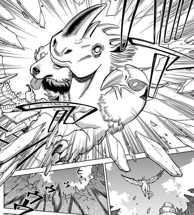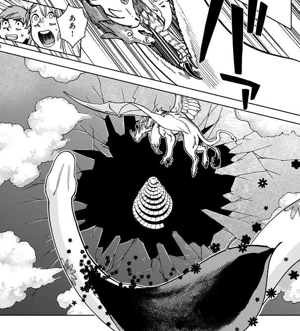 迷宮上空の穴が塞がれていく様子を見た翼獅子は、お前の力を振るう時だ、新たな魔物に話しかけます。すると、新たな魔物は迷宮上空の穴へ勢いよく飛び立ちます。新たな魔物は、塞がれつつあった迷宮上空の穴を再び破壊すると、さらに迷宮の結界を破壊していき、穴を大きくしていきます。