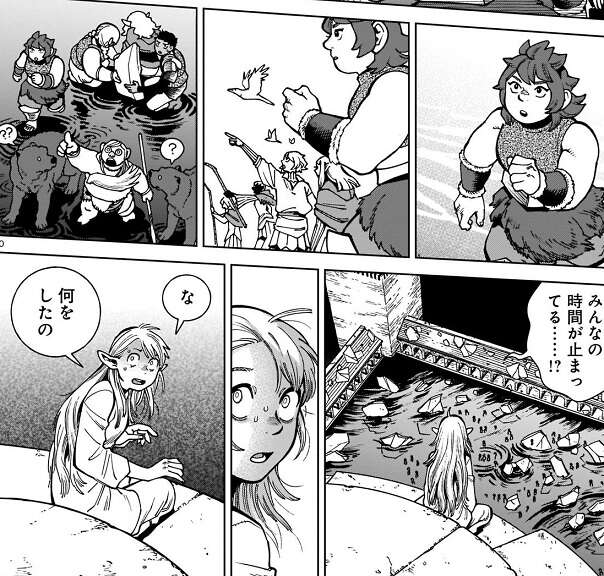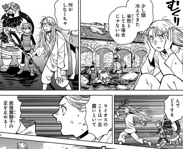 前回の記事はこちらです。マルシル達は翼獅子に元の湖に強制的に移動させられます。