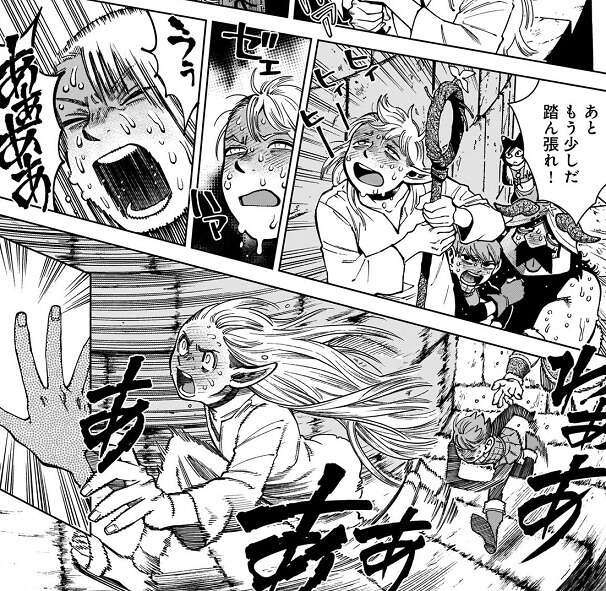 マルシル達は翼獅子を掴まえますが、そこは既に塔の頂上でした。地上に到達してしまった翼獅子が何かをする、と思いマルシル達は身構えますが、特に何かが起きた気配はありません。
