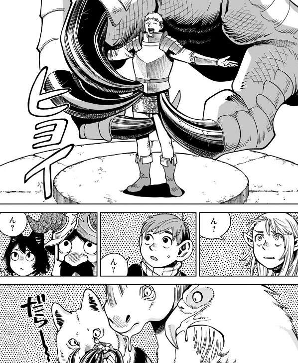翼獅子ですが、魔物を使って結界を破りついに地上へと到達します。そして、みんなを翼獅子の世界へと連れて帰ろうとしますが、魔物になった?ライオスが翼獅子を掴んでおいしそうに見つめます。この魔物が翼獅子を喰ってしまいそうですが、これはライオスの考えた作戦なのでしょうか?それだとなかなか考えられた作戦だと思いますが、翼獅子がどう動くのかも注目ですね。