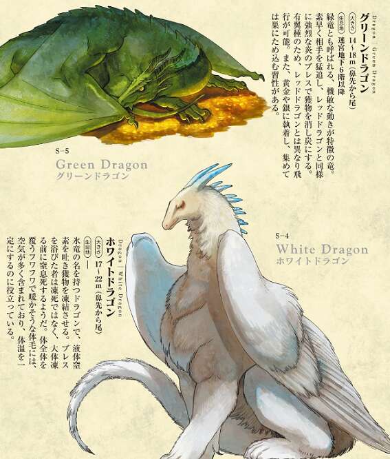 植物、花虫類、菌類といろいろ魔物の種類がありますが、インパクトがあるのはやはり竜類です。70話でライオスはグリーンドラゴン、ホワイトドラゴン、レッドドラゴン等の色々なドラゴンと戦いますが、どれも強敵で人間ではまともに戦ったら勝てそうにありません。