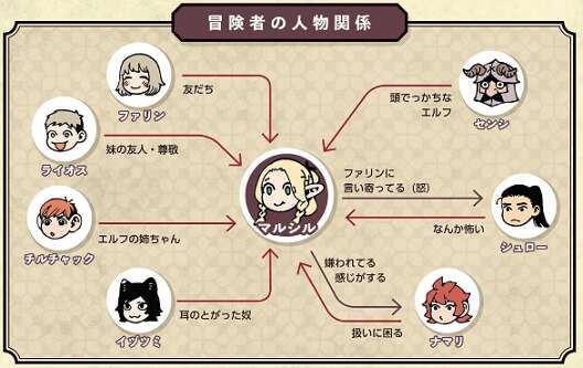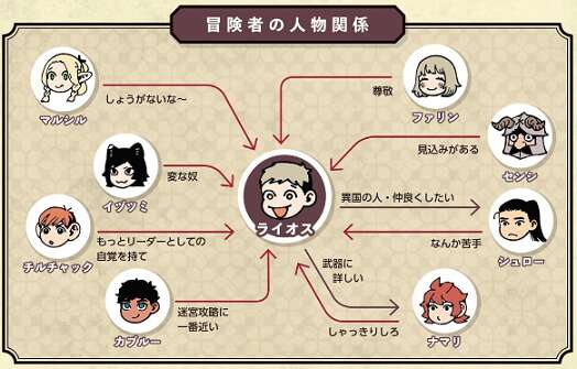 人間関係は、ライオスがリーダーを務めていると人間関係が不安ですが、なんだかんだで結構良好です。