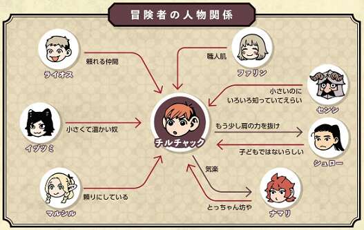 人間関係は、見た目からか子供扱いされることが多いようです。しかしチルチャックの仕事の腕は確かなので、頼りにされています。