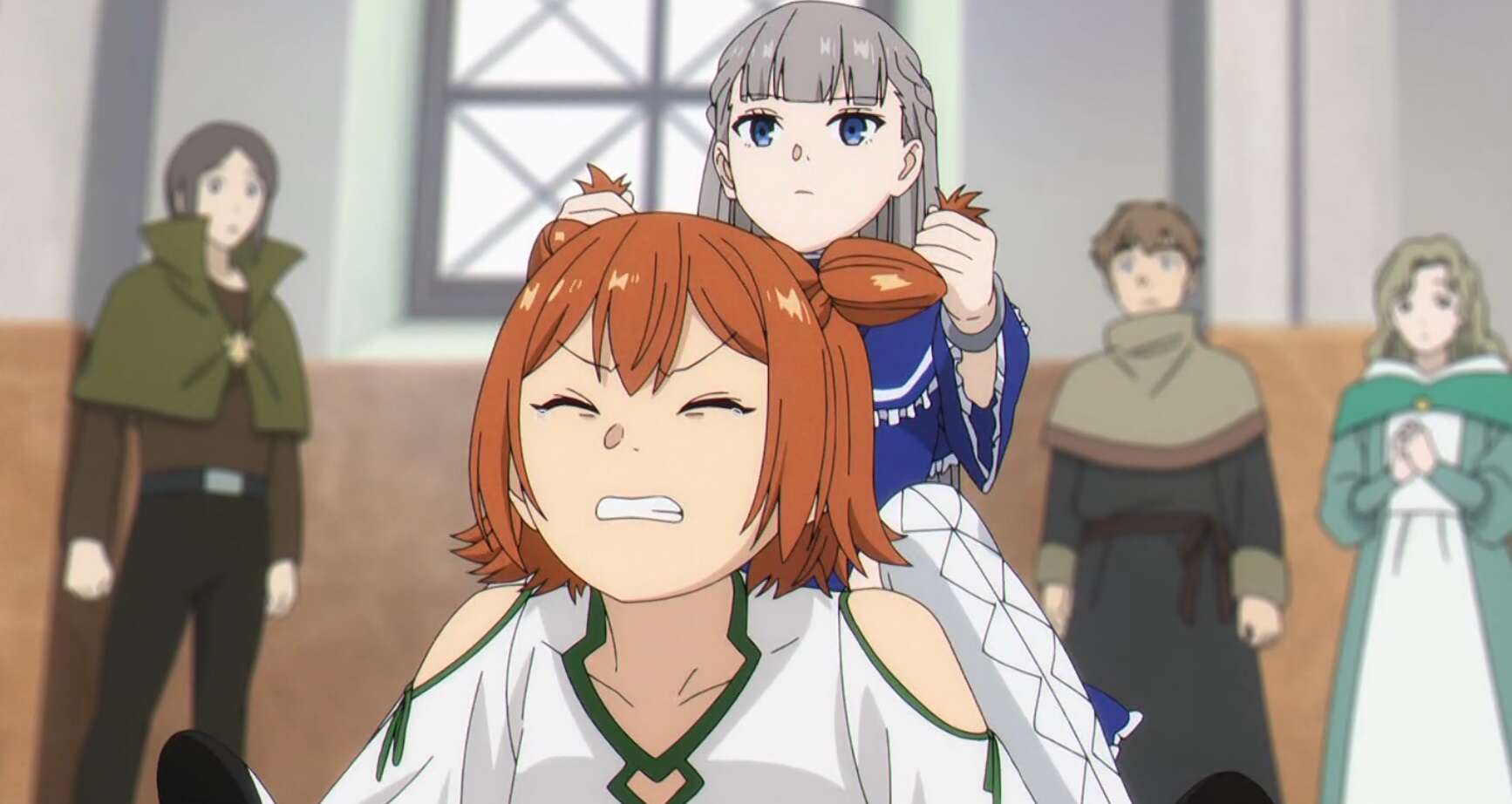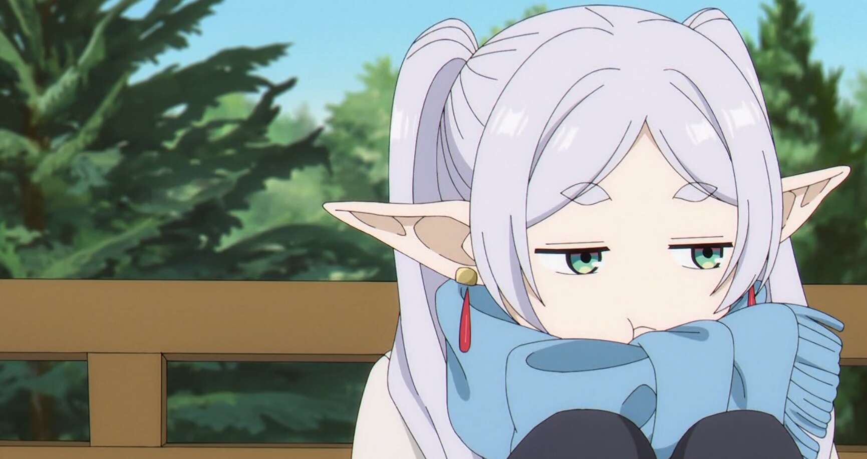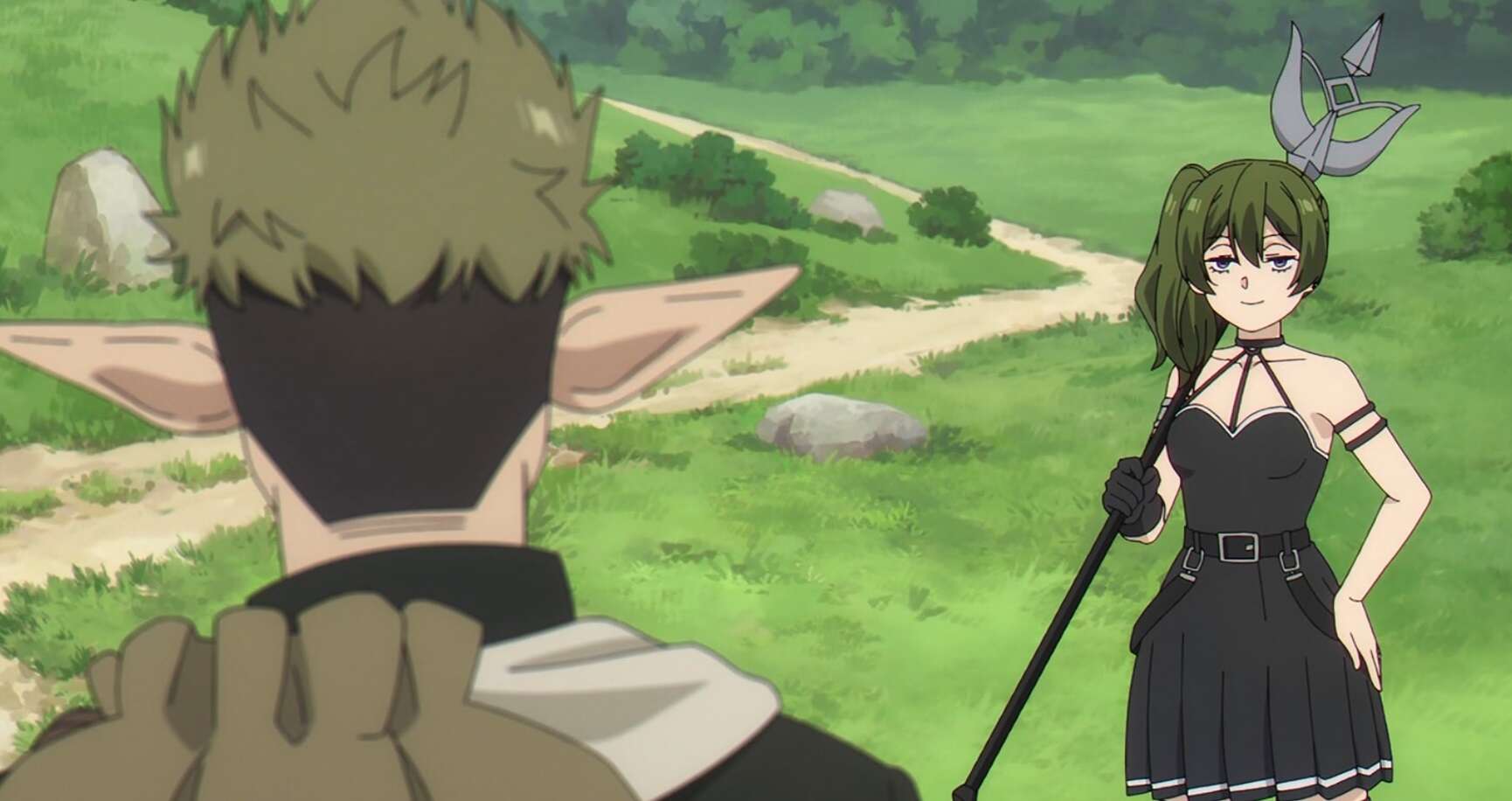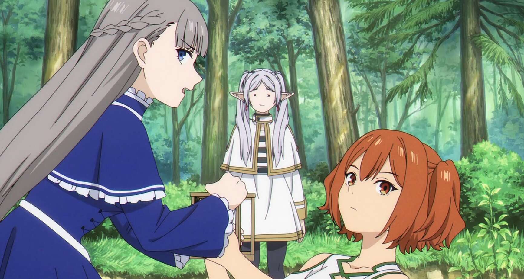 一方、グラナト伯爵では魔法使いの女性が盗賊に襲われていました。盗賊は金目の物を女性から奪おうとしますが、第11話で別れたエルフのクラフトが割って入り盗賊を撃退します。魔法使いの女性はユーベルと名乗りクラフトにお礼を言いますが、クラフトはお前を助けたわけでないと言い、人殺しの目をしているとユーベルに言います。ユーベルも一級魔法使い試験を受けるのが目的で、クラフトと別れた後オイサーストを目指します。
