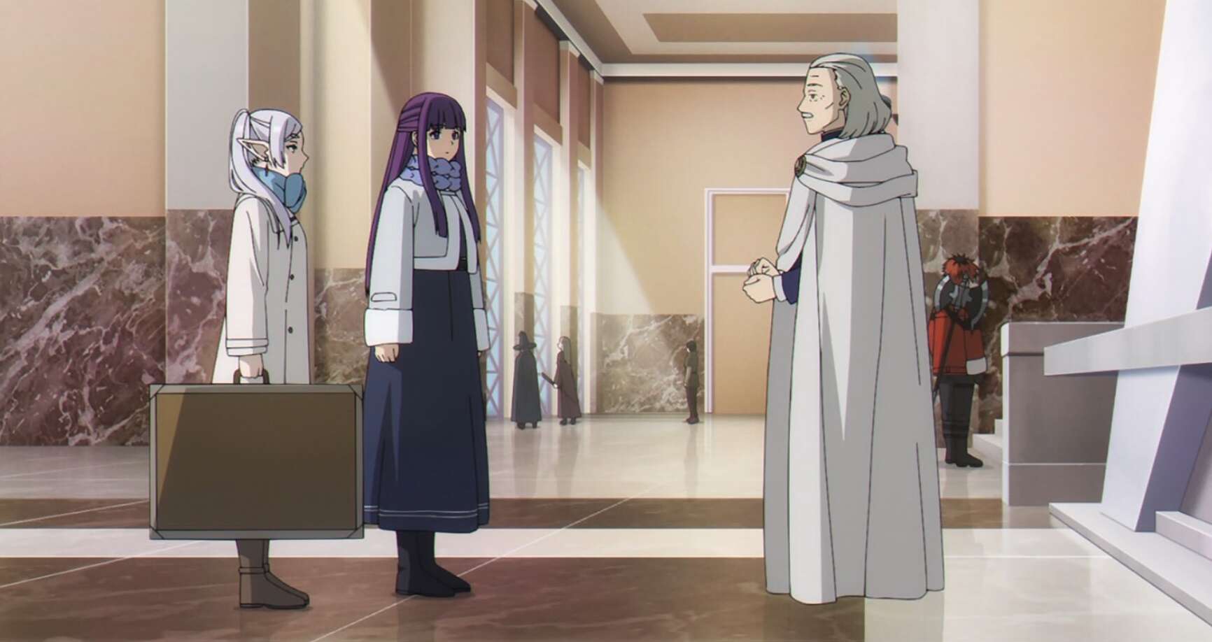 オイサーストに着いたフリーレン一行は、一級魔法使い試験を受験する手続きをしますが、受験資格には五級以上の魔法使いの資格が必要と分かり、フリーレンには受験資格がありませんでした。フェルンに任せてフリーレンはその場を去ろうとしますが、フリーレンが持っている聖杖の証を知っている魔法使いの男性に出会います。その魔法使いの男性は聖杖の証を確認すると、一級魔法使い試験に参加できるように手続きをしてくれます。