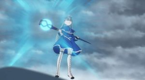 ユーベルの攻撃をとっさに避けて、ヴィアベルは再びソルガニールでユーベルを拘束します。ユーベルとの会話でヴィアベルは、ユーベルを殺すことを躊躇ってしまいますが、最終的にヴィアベルはユーベルを殺す覚悟を決めて、魔法で殺そうとします。しかしヴィアベルが殺そうとする直前、エーレを倒したフェルンが魔力を消した状態で突然現れ、ヴィアベルに杖を突き付けて動かないように警告します。