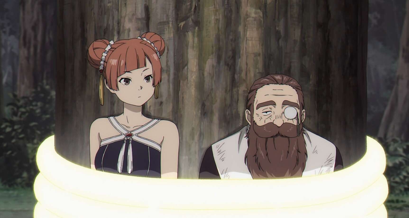 フリーレンは近くに潜伏しているラオフェンに、来なければデンケンを殺すと脅し、シュティレを持って出てくるように言います。デンケンには潜伏し続けろと言われますが、ラオフェンはジルヴェーアで高速移動し、デンケンを回収して逃げようとします。しかし、高速移動中のラオフェンの魔力をフリーレンに探知されてしまい、結局ラオフェンもデンケンと一緒に木に縛り付けられます。フリーレンはシュティレを奪い返しますが、リヒターはラヴィーネとカンネを殺す、そういう合理的な判断が出来る男だ、とデンケンに言われてしまいます。しかしフリーレンは慌てず、カンネたちが勝つ、結界の解析がちょうど終わった、と言うと、結界を破る魔法を使います。