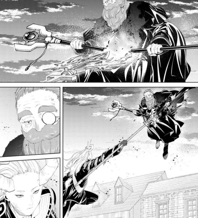 その隙を突いて、デンケンは高圧縮の人を殺す魔法(ゾルトラーク)をマハトに撃ち込みます。マハトは、今までデンケンがこれほどの威力を持つ高圧縮の人を殺す魔法(ゾルトラーク)を使っていなかったことに驚愕します。