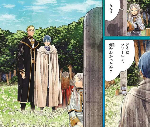 フリーレンが女神の石碑に触れた途端、フリーレンのみ過去に飛ばされたようで、勇者ヒンメル一行と再会します。