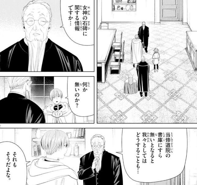 前回の記事はこちらです。女神の石碑の手掛かりを求めて、ヒンメル一行は修道院の写本を調査しようとします。