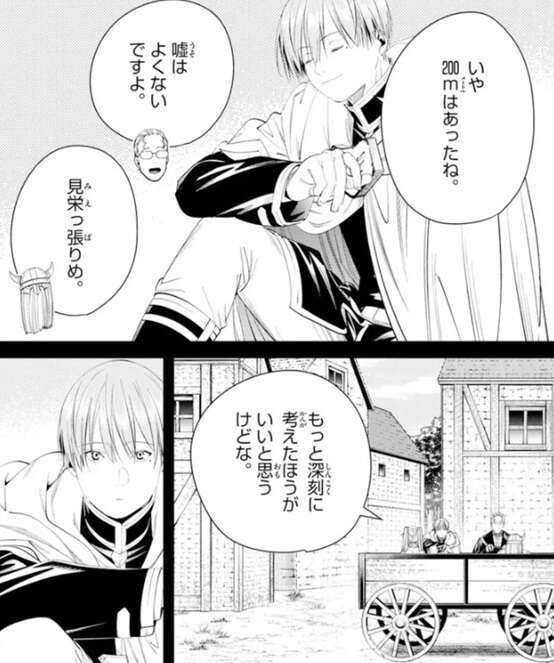 しかしヒンメルだけは、いや200メートルはあったね、と言い、噂が誇張されるのも、まんざらでもない様子です。するとフリーレンは、もっと深刻に考えたほうがいいと思うけどな、とヒンメルに忠告します。