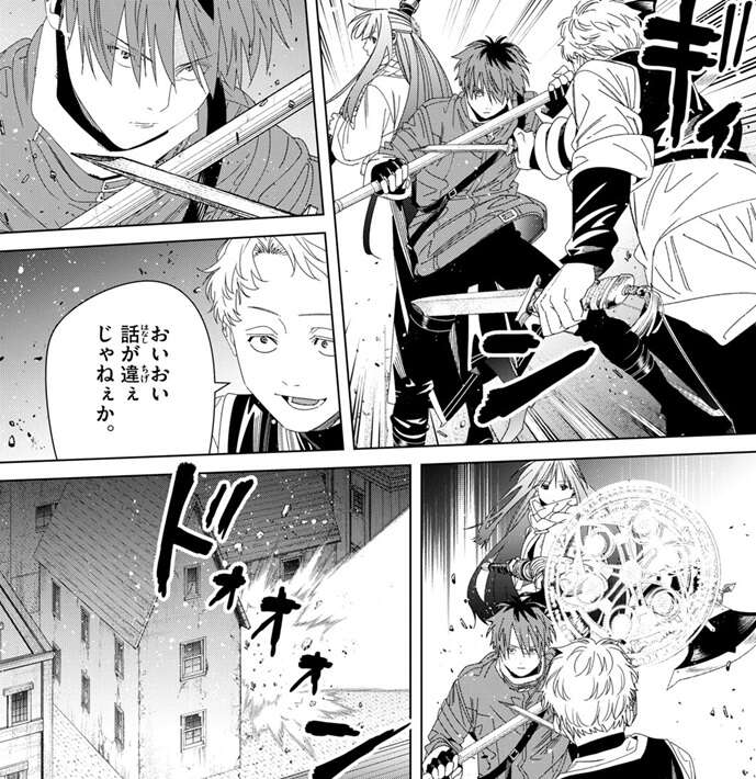 ザインはシュタルクの治療を終えますが、シュタルクでなければ即死だったようで、しばらくは安静だとフリーレンとフェルンに言います。ザインはこの街に戦士ゴリラがいるかもしれないとフリーレン達に説明しますが、廃屋の外ではヴォルフが待ち構えていました。