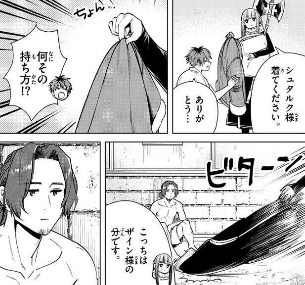 前回、ポーカーで負けてしまい服など、身包みを剥がされたシュタルクとザインですが、フェルンが買い戻してくれました。ギャンブルをする人は最低だと言うフェルンは、シュタルクの服を汚いものを扱うように指で摘まみます。ザインの服は地面に叩きつけています。