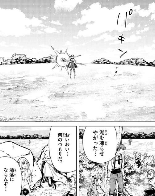 一瞬即発の状態でしたが、湖の方向で魔法の反応があり、湖ではラヴィーネが魔法で湖を凍らせ始めていました。そのままラヴィーネは湖を凍らせてしまい、湖に集まっていた他の受験者は湖が凍ったのを見て、焦っています。
