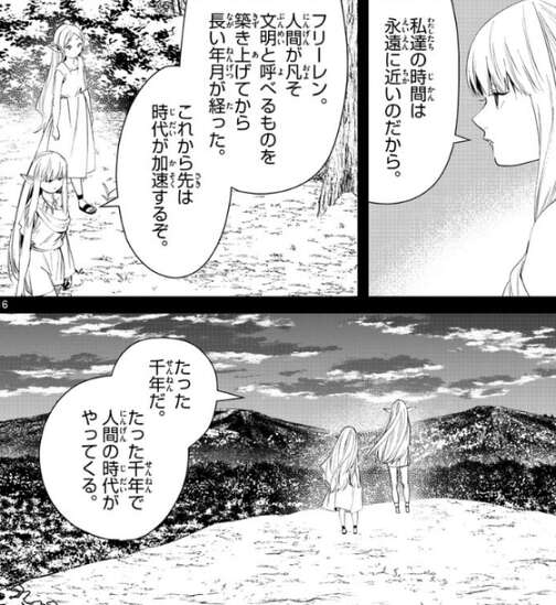そしてゼーリエは、これから先は時代が加速するぞ、たった千年だ、たった千年で人間の時代がやってくる、とフリーレン言います。エルフは人間に追い抜かれる、と言い、フリーレンに鍛錬を怠らないように忠告します。