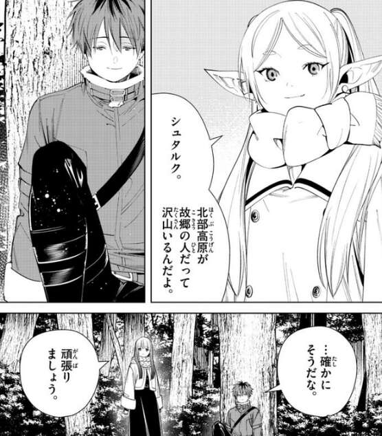 フリーレンは、いいよ、どうせ北上するし、ついでに討伐しておくよ、と気軽に頼みを引き受けますが、シュタルクは街道を南に下れば三日もあれば北部高原に出れる、こんな危険な場所に暮らす必要はないんじゃないか?と、村人やフリーレン達に疑問を口にします。