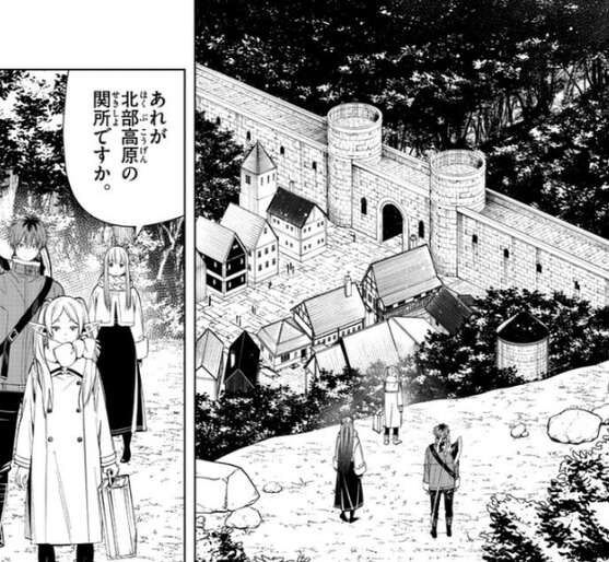 この関所を抜けるとしばらくはまともな補給が出来ないので、フリーレン達はここで必要な物資を買いそろえます。そして、必要な書類を提出し関所を通過し北部高原へと入っていきます。