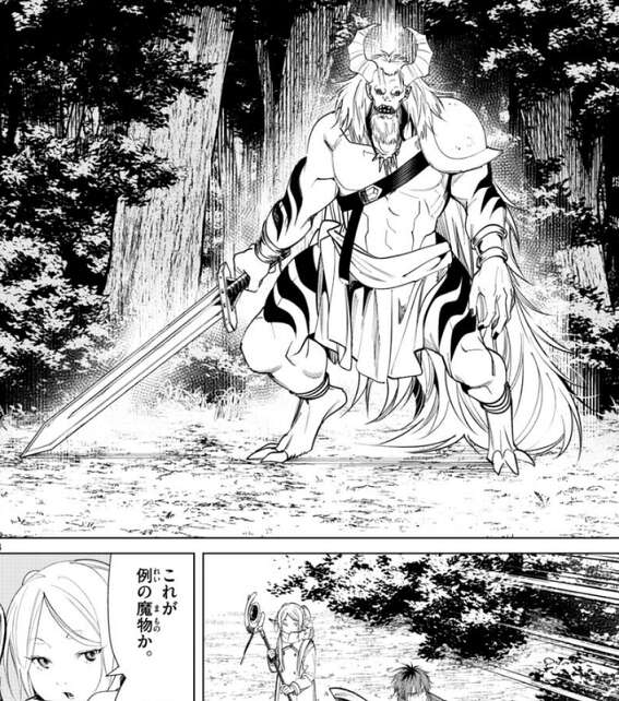 街道を進むと、村人が言っていた強力な魔物に遭遇します。フリーレンがフェルンとシュタルクに、油断しないように言うと、魔物が襲い掛かってきます。