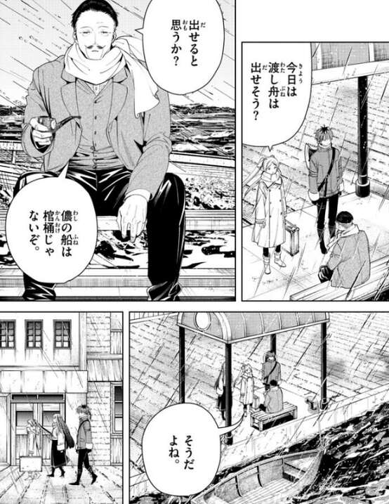 下手に遠回りするくらいなら、ここで数か月でも待った方が結果的に安全で早く進めるとフリーレンは言い、この港町で時間を潰して嵐が治まるのを待ちます。結局、フリーレン達は冬が明けるまでこの港町で待つことになります。