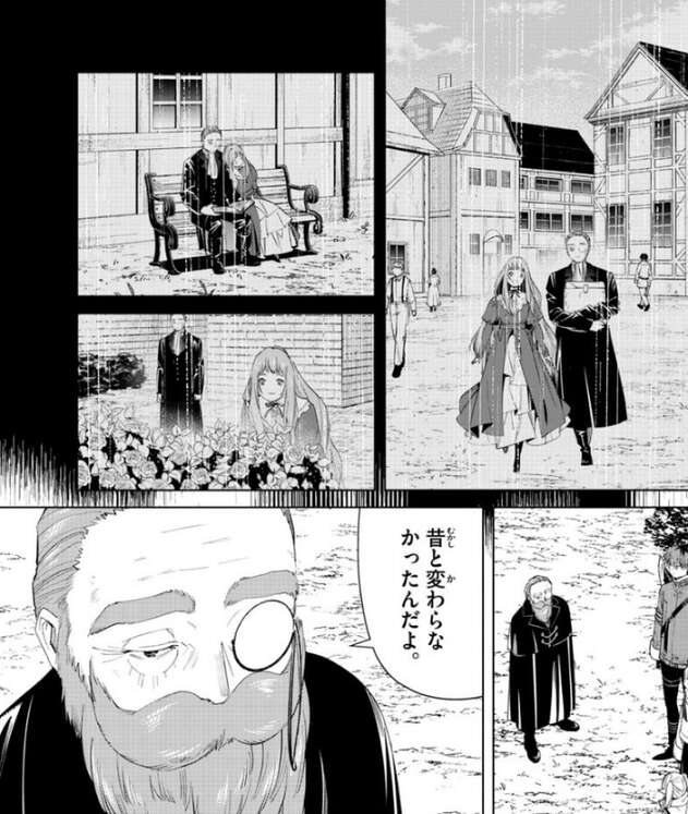 依頼書に書かれていた場所は城塞都市ヴァイゼ、50年前七崩賢 黄金郷のマハトに一瞬で変えられた悲運の都市でデンケンの故郷でもあります。依頼の内容は大陸魔法協会から派遣された結界の管理者を手伝う事で、結界の管理者は第77話で少し触れられていましたがデンケンです。デンケンはフリーレン達に自分の故郷の事、昔妻と二人で暮らしていた屋敷の事などを説明します。