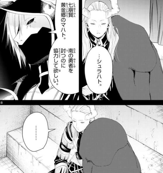 そして、全知のシュラハトが登場します。シュラハトは第63話の南の勇者の話の時に出てきましたが、南の勇者の戦いの時マハトがどう関わっていたかが、新たに判明しそうです。