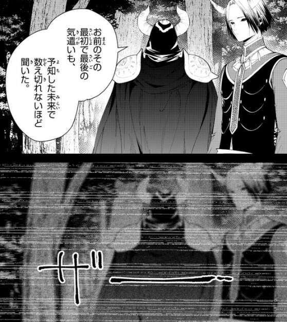 シュラハトとグラオザームはその場を去ろうとし、マハトは、生きて帰れるといいな、とシュラハトに気遣いを見せます。お前のその最初で最後の気遣いも、予知した未来で数えきれないほど聞いた、とシュラハトが答えた後、マハトの記憶は消されたようで、記憶が途切れてしまいます。