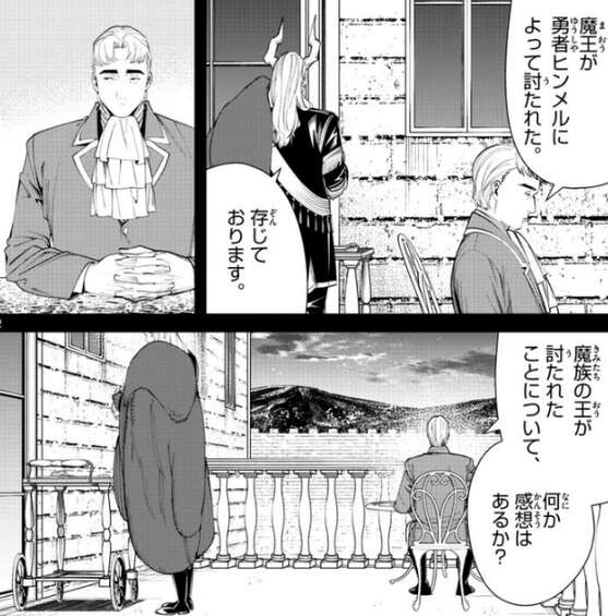 マハトが表舞台の仕事とは?と、聞くとグリュックはそれには答えず、魔王が勇者ヒンメルに討たれた話をし、マハトに何か感想があるか?と聞きます。しかし、マハトにとっては興味のないことのようで、特に何も、と答えるだけでした。