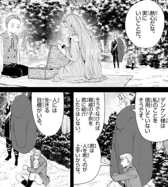マハトとデンケンは師弟関係となり、マハトがデンケンに魔法を教えています。マハトが、あの距離の岩を撃ち抜くのは魔族でも難しい、と休憩にしようと言いますが、その直後にデンケンは岩を魔法で見事に打ち抜きます。