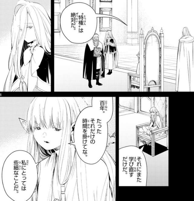 呪い返しの魔法(ミステイルジーラ)を渡すことに、呪いの対抗手段を失ってしまう、とゼンゼはゼーリエに異を唱えますが、ゼンゼは、私を誰だと思っている、呪いへの対策など他にいくらでもある、“特権”は絶対だ、と自分の考えを変えません。それにまた百年かけて学び直せばいいとゼーリエは言い、私にとっては些細なことだ、とゼーリエは呪い返しの魔法(ミステイルジーラ)を失うことを気にしません。