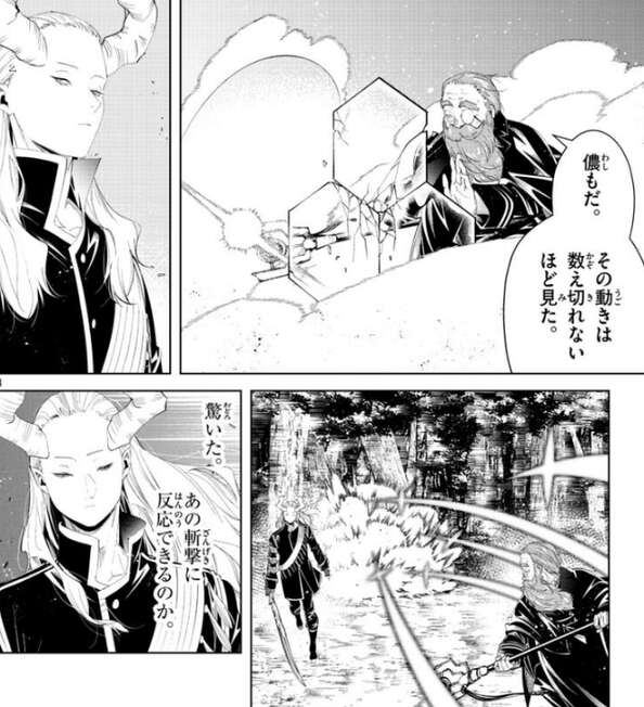 前回、ソリテールとフェルン、シュタルクとの戦闘でしたが、今回はマハトとデンケンの戦闘がメインです。