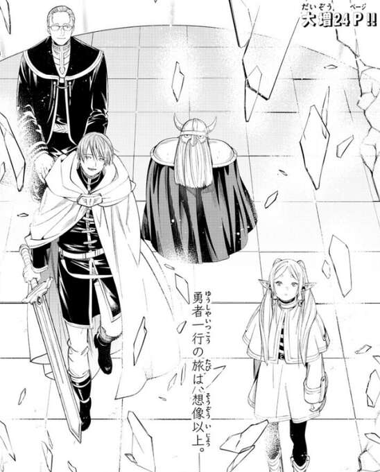 ヒンメルが剣で結界魔法を叩くと、ちょっとだけ結界魔法が欠けます。ヒンメルは、これは決して壊れない物ではない、とフリーレンに言うと、アイゼンもヒンメルと同じように結界魔法を壊そうとします。その様子を見てフリーレンは諦めることを止め、不死なるベーゼの結界魔法を打ち破ろうとします。この後、フリーレンは不死なるベーゼの結界魔法を無事、打ち破ったようでその時の様子が巻頭の扉絵となるようです。