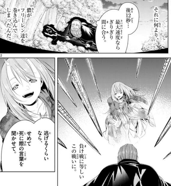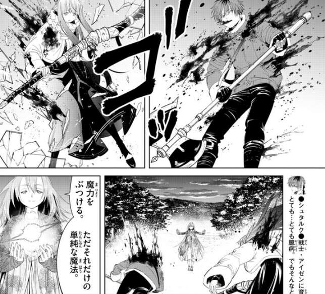 それでもフェルンとシュタルクは諦めず、フェルンは速度を失わず魔力の密度だけを上げた魔法でソリテールを攻撃し、ソリテールにダメージを与えます。