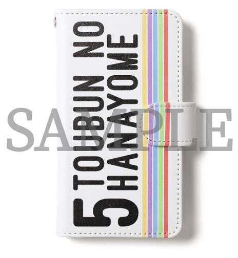 作品名「5TOUBUN NO HANAYOME」が大きく書かれている、手帳型のスマートフォンケースです。右側の五色のカラーは、五つ子たちのイメージカラーになっているそうです。