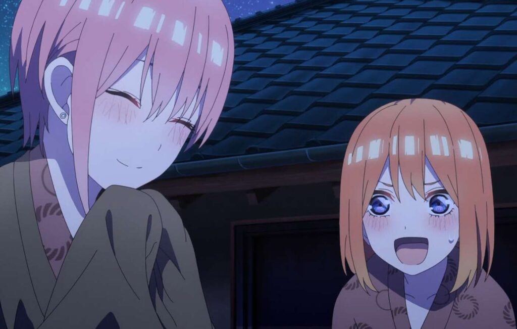 一方、一花と二乃は二人だけで朝風呂へ行きます。そこで二乃は一花に恋愛相談をし、好きな人が出来たと言います。二乃が風太郎に告白した時、その場所にいた一花としては複雑な気持ちになってしまいます。