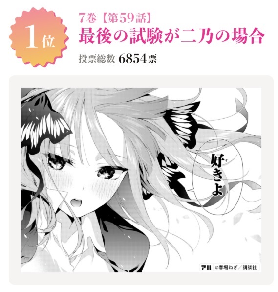 【ネタバレ】五等分の花嫁 エピソード総選挙 結果発表
