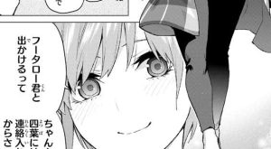 ショックを受け立ち尽くす風太郎に、光栄だが上杉さんにはもっと良い人がいるはずです、私なんかで収まっちゃもったいない!、と笑顔で言います。しかし風太郎はお前の気持ちを教えてくれと、四葉に迫ります。答えられない四葉はとっさに逃げ出してしまい、風太郎は四葉を見失ってしまいます。