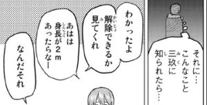 ドアを壊して外に出ようとしますが、防犯センサーがついています。解除しないと警備員が駆けつけてきて、林間学校も台無しです。「解除できるか見てくれ」と風太郎が言います。一花は三玖に見つかる事を気にしているのに。