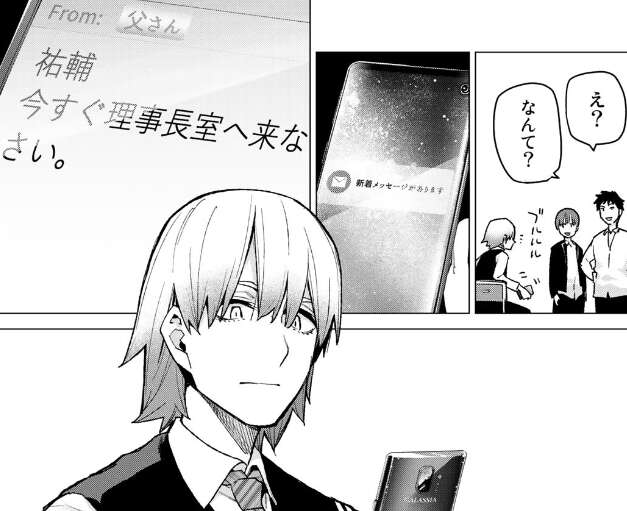 まず1教科、国語が終了しました。風太郎は顔色が以前悪く調子がよくなさそうです。武田は自信満々で、1問落としたくらいかもと余裕です。しかしそこに武田の父親からメッセージが届き、今すぐ理事長室に来るように連絡が来ます。