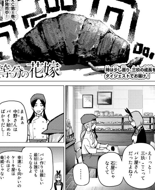 三玖が苦労して普通のパンを作れるようになるまでの話ものっていますが、パンを披露して食べてもらうだけでかなり大変そうです。
