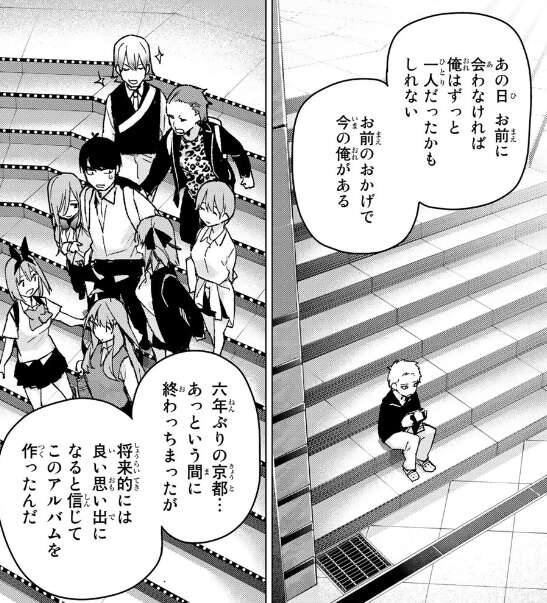 最後に風太郎は零奈にお礼を言い、あの日零奈に会わなければずっと一人だったかもしれないと言い、零奈のおかげで今の自分があると風太郎は感謝します。6年ぶりの京都での修学旅行、色々ありましたが最終的に良い思い出になると信じてこのアルバムを作ったと風太郎は話します。