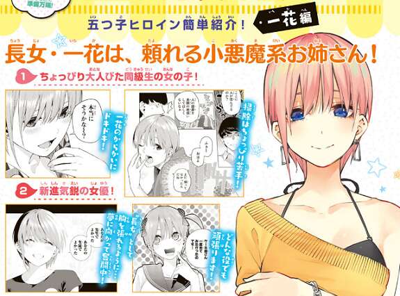 まずは一花編で、一花は頼れる小悪魔系お姉さん!として紹介されています。