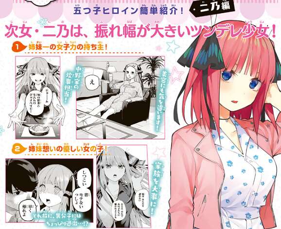 二乃編では、振れ幅が大きいツンデレ少女!として紹介されています。