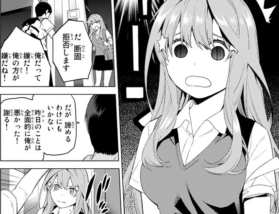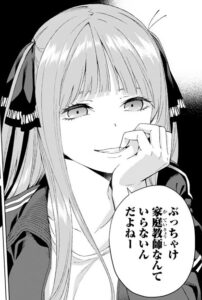 というわけで、家庭教師アルバイトは続いていきます。なお、この後二乃に盗撮疑惑をかけられてしまいます。疑惑ははらせるでしょうか。